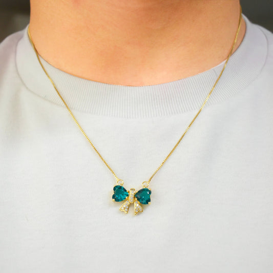 Studded Bow Pendant Necklace