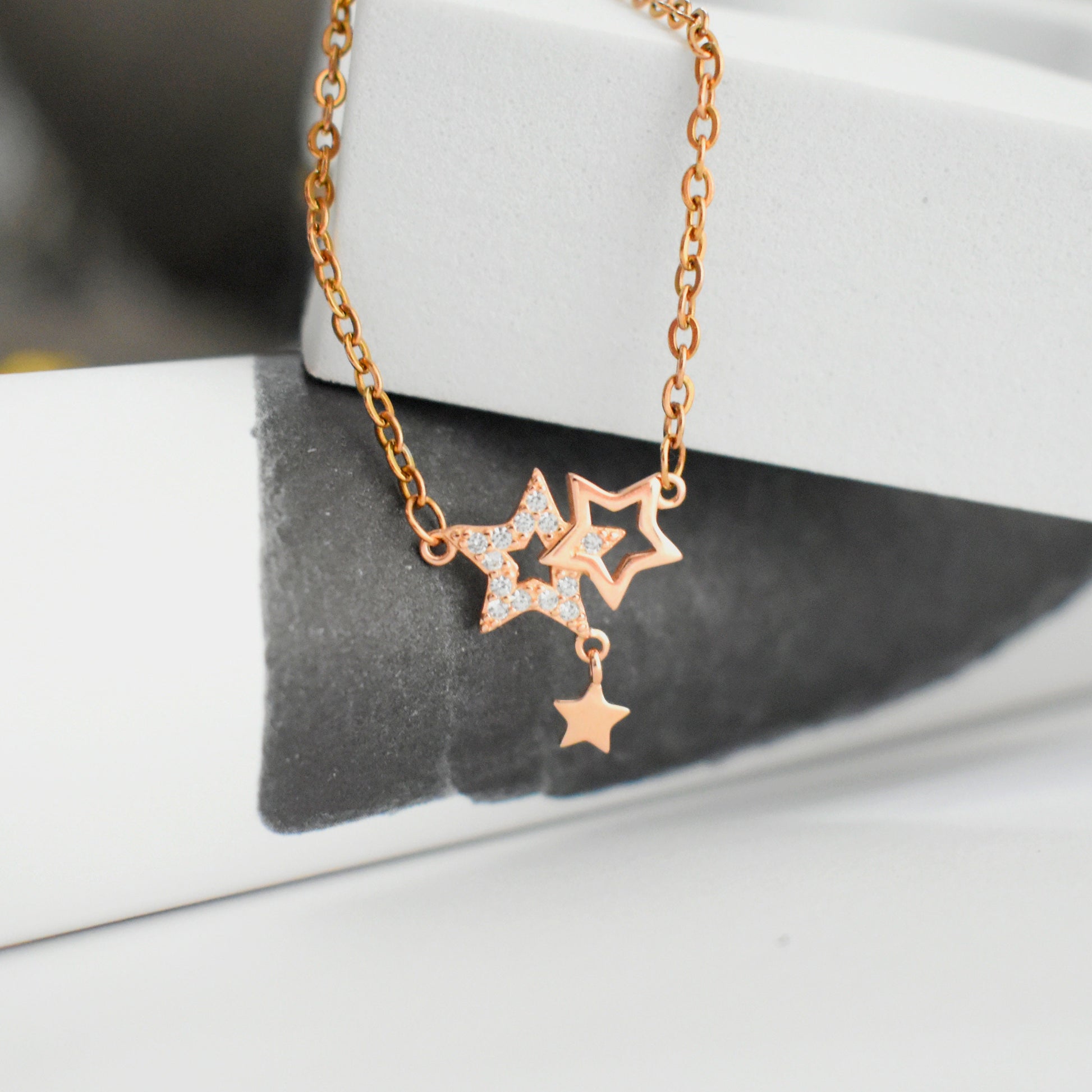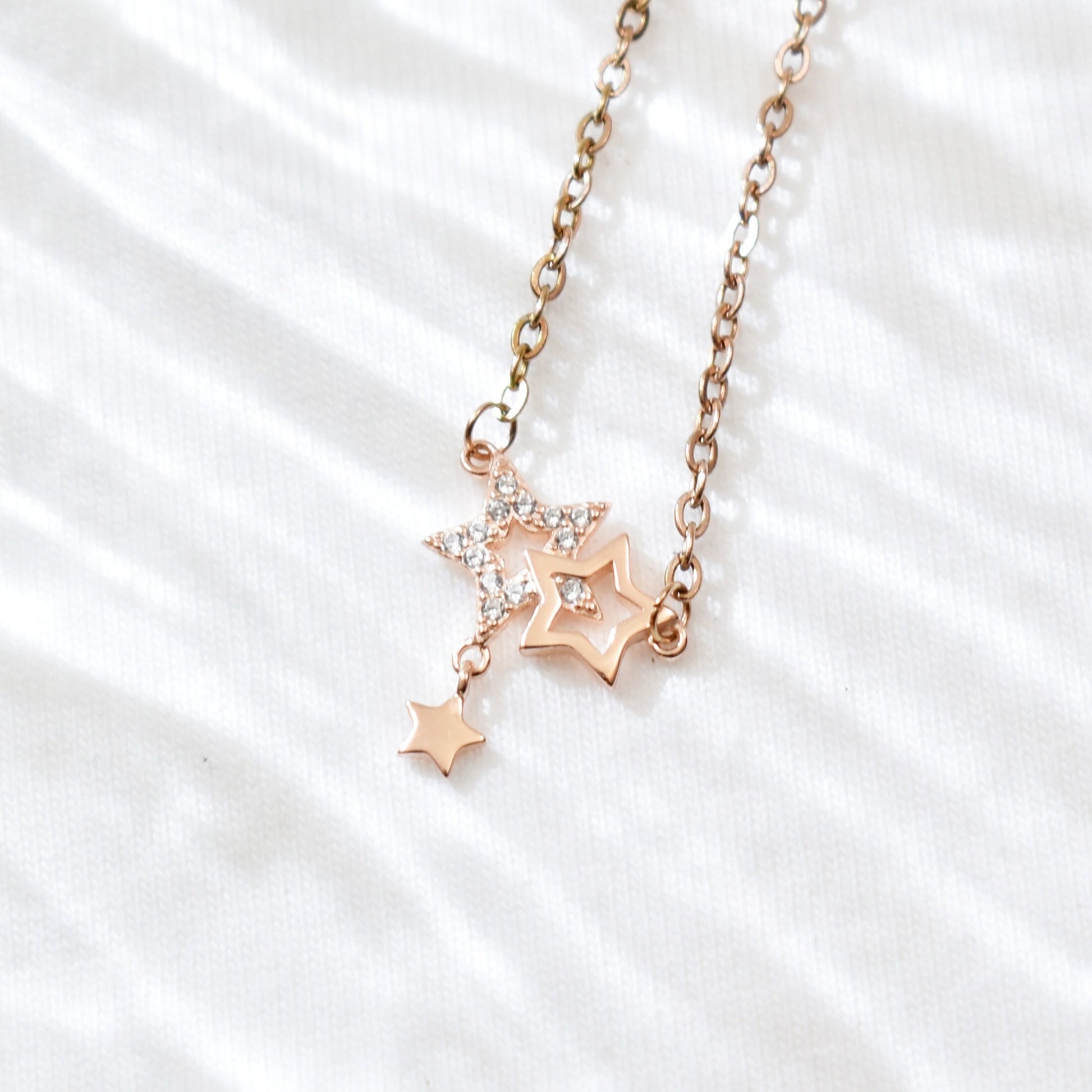 Rosegold Enchanting Love Crystallized Three-Star Necklace