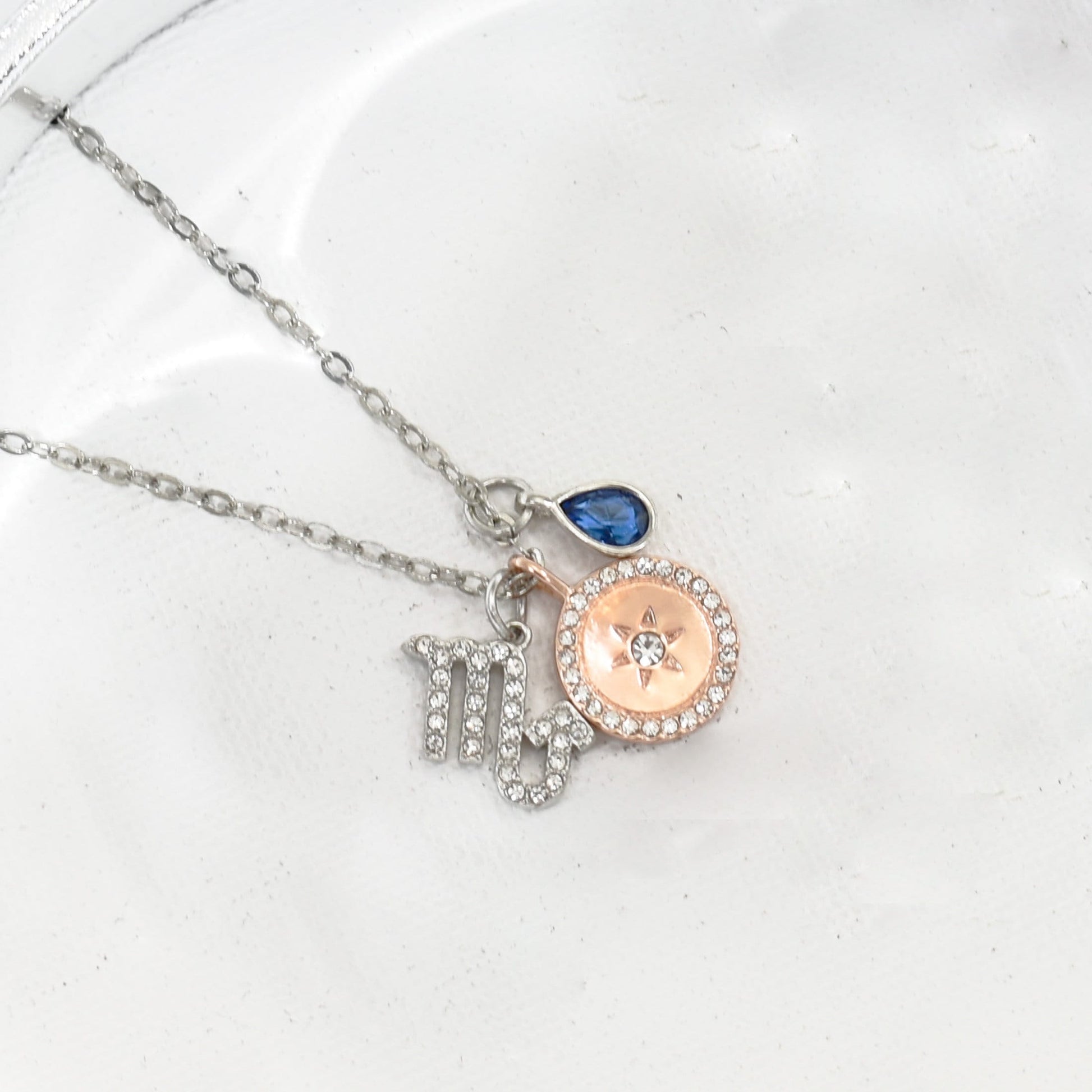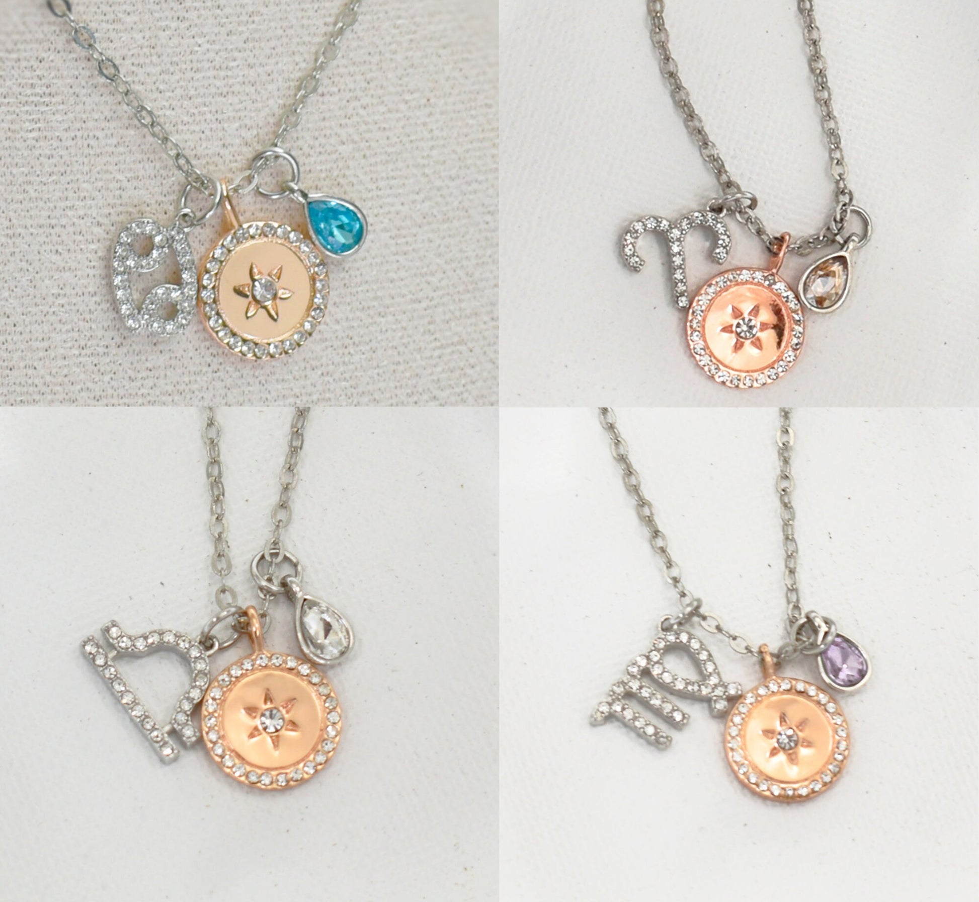 - Zodiac Star Sign embedded inside a ring of Zircon Crystals.